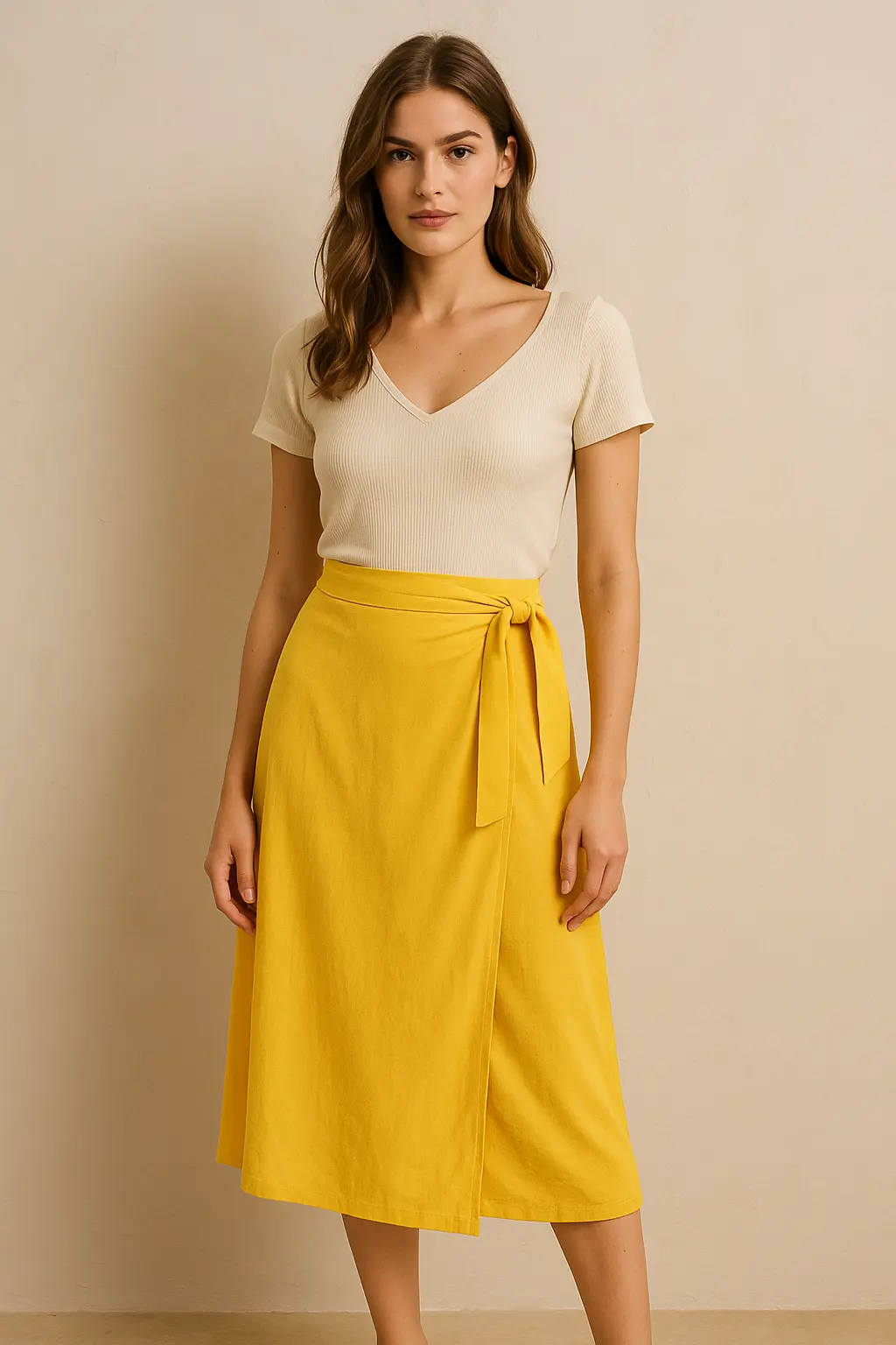 Saia Midi Envelope Maëlys, Tecido fluido, amarração lateral.